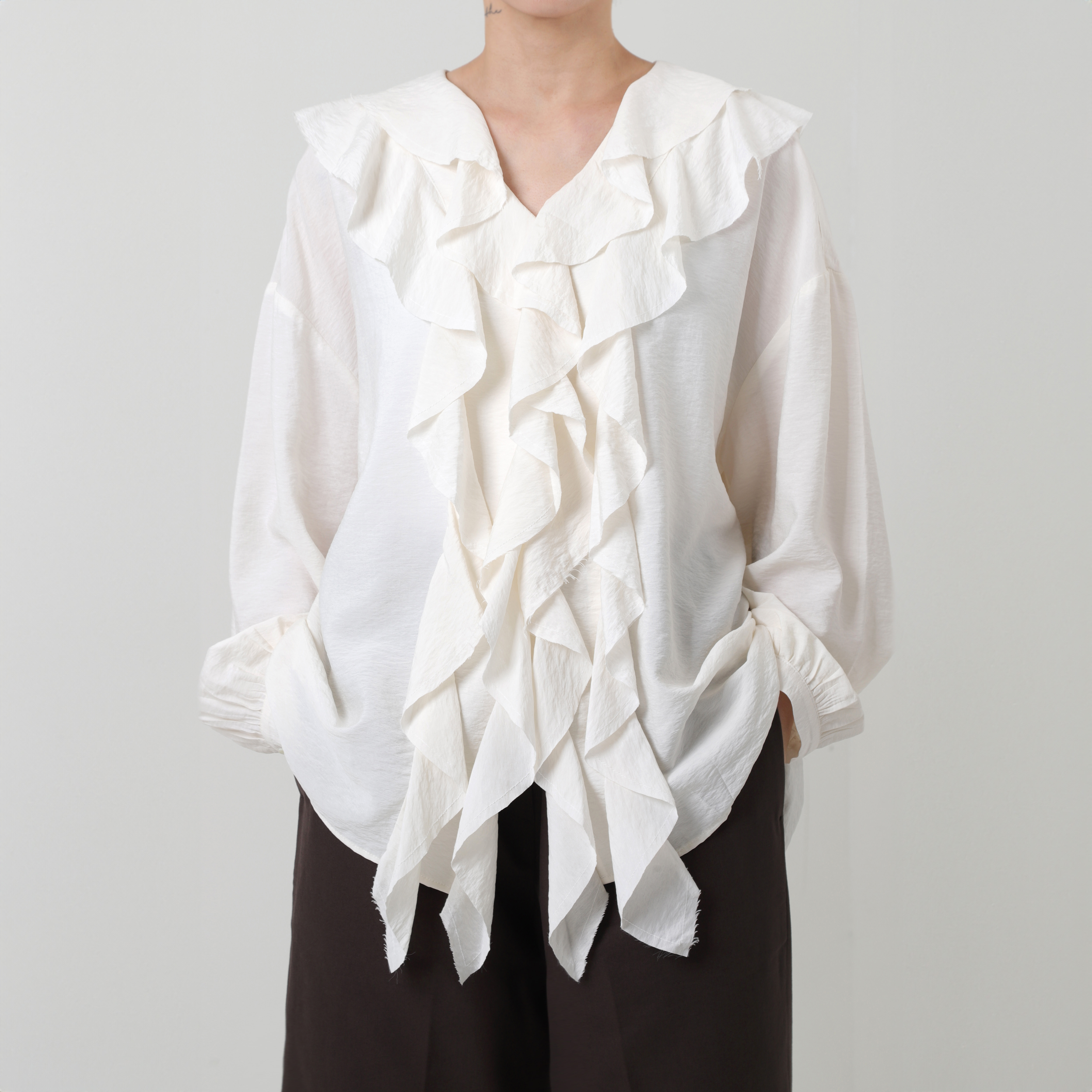 시크 보호 프릴 블라우스입니다.