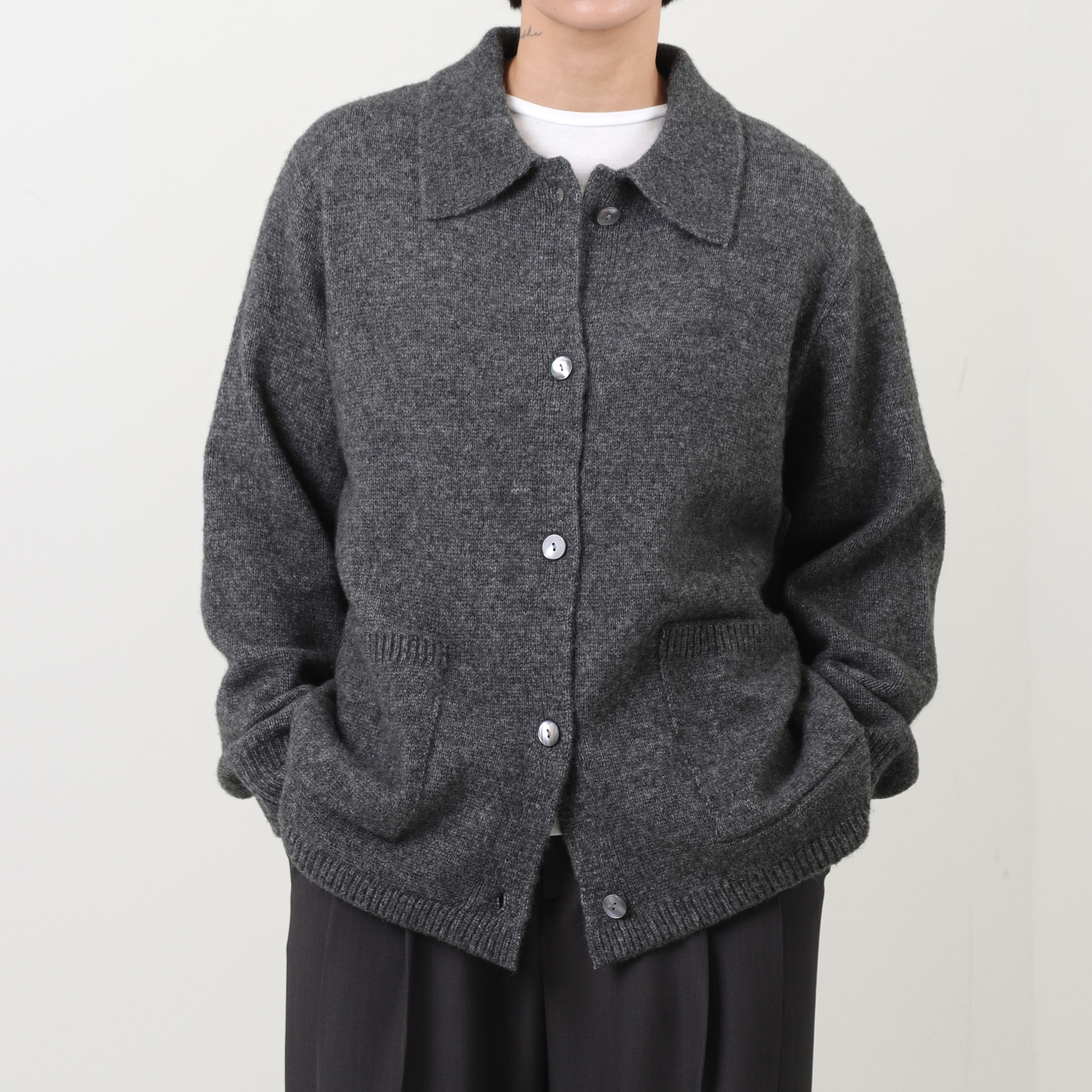 셔츠 디자인을 모티프로 한 단정한 카라 니트입니다.